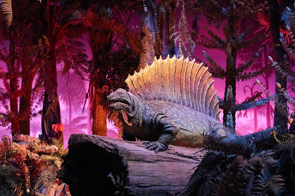 In the main diorama, the fascinating Edaphosaurus creatures were prominently located on the right side of your traveling theater car, creating a captivating scene for guests journeying through the Universe of Energy.
