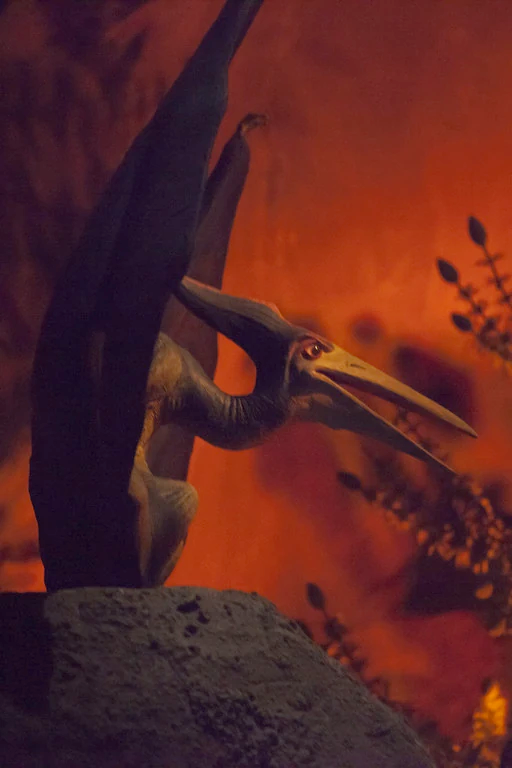 As mentioned previously, these fascinating flying creatures made their landing in the expansive Elasmosaurus swamp. The original Pteranodon from the Universe of Energy could be seen atop a rock right before guests ventured to the next theater.